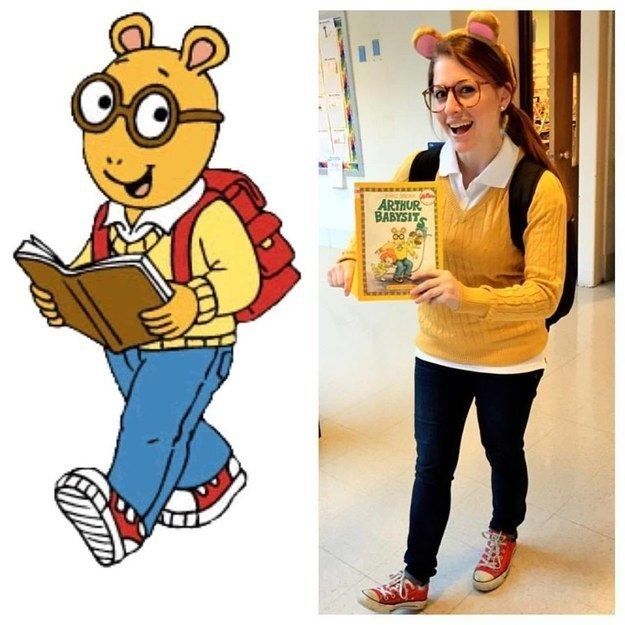 All you need is jeans, a yellow sweater, a pair of glasses, and some construction paper to make your own ears.