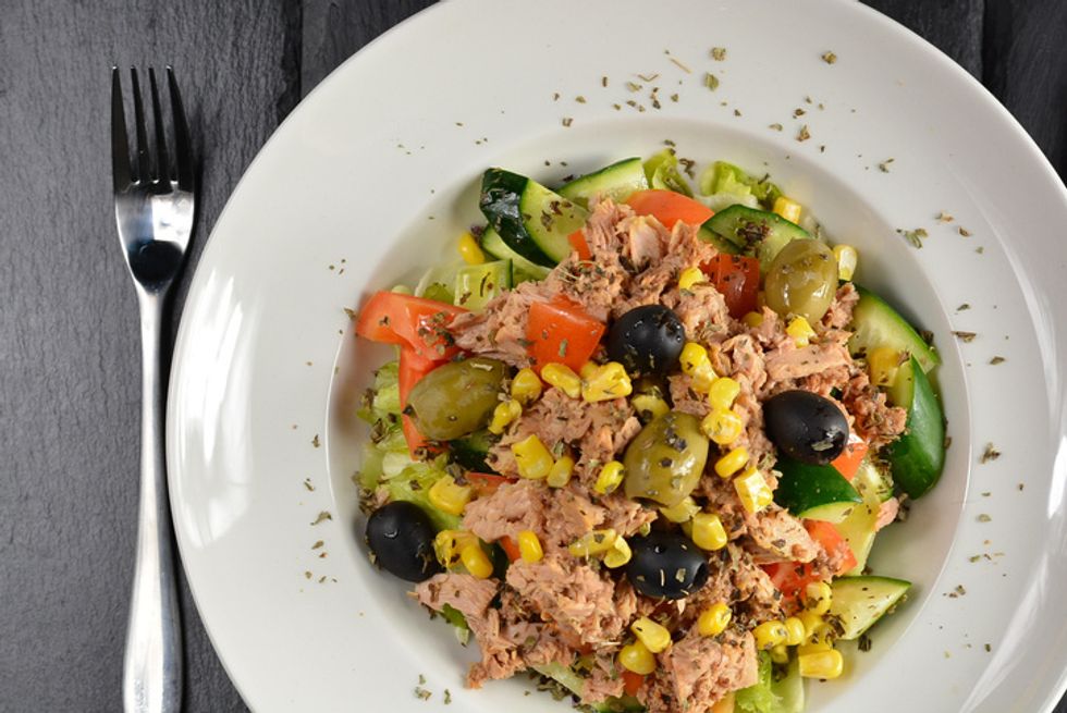 "This is one of my go-to lunches, which requires no cooking and no bread (if you are into the no carbs thing). I take two cans of tuna fish (in water, not oil) and put that in a bowl. Then I add spicy mustard and hot sauce (instead of mayo). After you mix that up, I like to add things that provide more flavor (and spice) like olives and peppers. Finish with black pepper, salt, dill and garlic powder (or the spices of your choice). And that's it! ...Of course, if you live with someone who HATES fish like I do, be sure to properly scrub down your bowl afterwards!" - Rob R., Production Lead