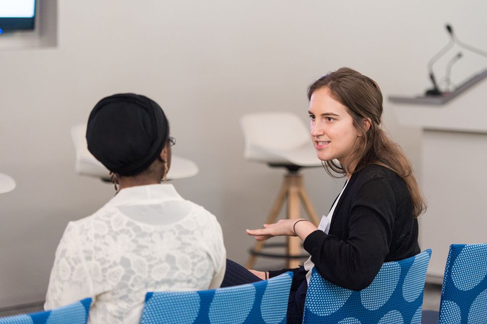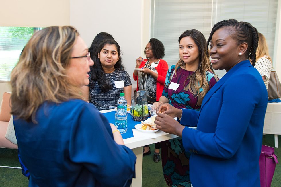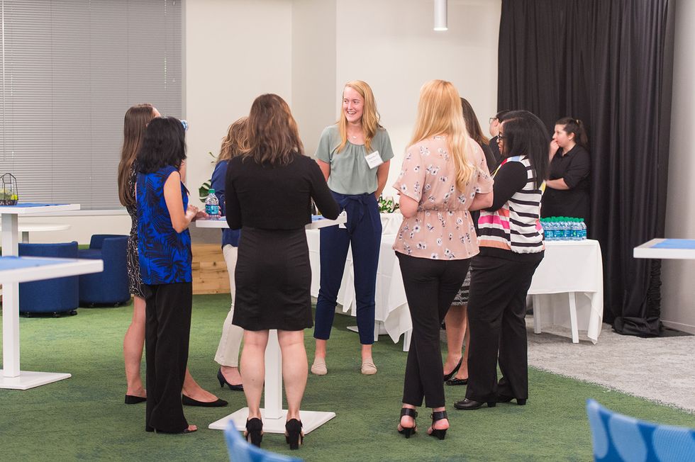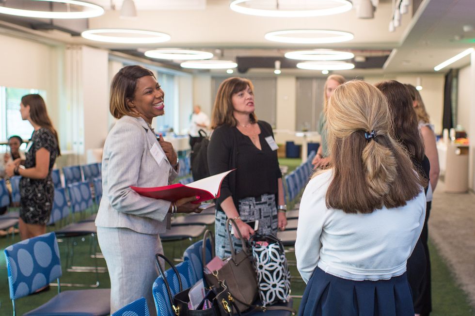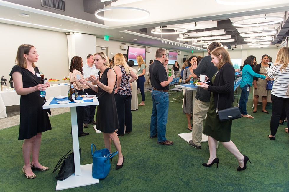 PowerToFly's Dionna Smith and T. Rowe Price's Maria Chirgott mingle with attendees