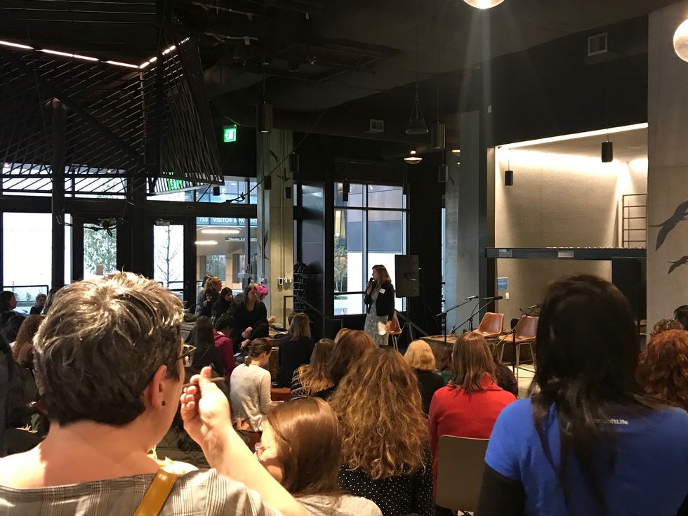 Charlotte started her address by having the various women in the room raise their hands according to their specialty. The capacity room was full of a diverse cross-section of women in tech including but not limited to engineers, data scientists, program and project managers, designers and sales people. Charlotte discussed her role at Microsoft, provided some insight into her own career journey and imparted a wonderful piece of advice to the attendees: "I encourage you guys to take these opportunities not just to socialize but to get to know each other and most importantly, learn from each other. That's what it's kind of all about. Bring something to the table, take something from the table."