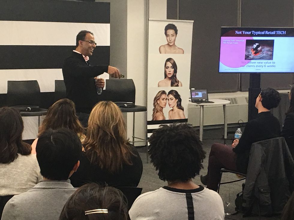 To kick off the evening, guests were greeted with a glass of champagne (Sephora and Moët & Chandon share LVMH as a parent company,). After the bubbly was served, Sephora CIO Savio Thattil kicked off the night and demonstrated how he has built an environment where women, and diversity overall, thrive at Sephora. He discussed his team's goals, how they deliver products, and the challenges his team tackles to create seamless retail experiences through the Americas.