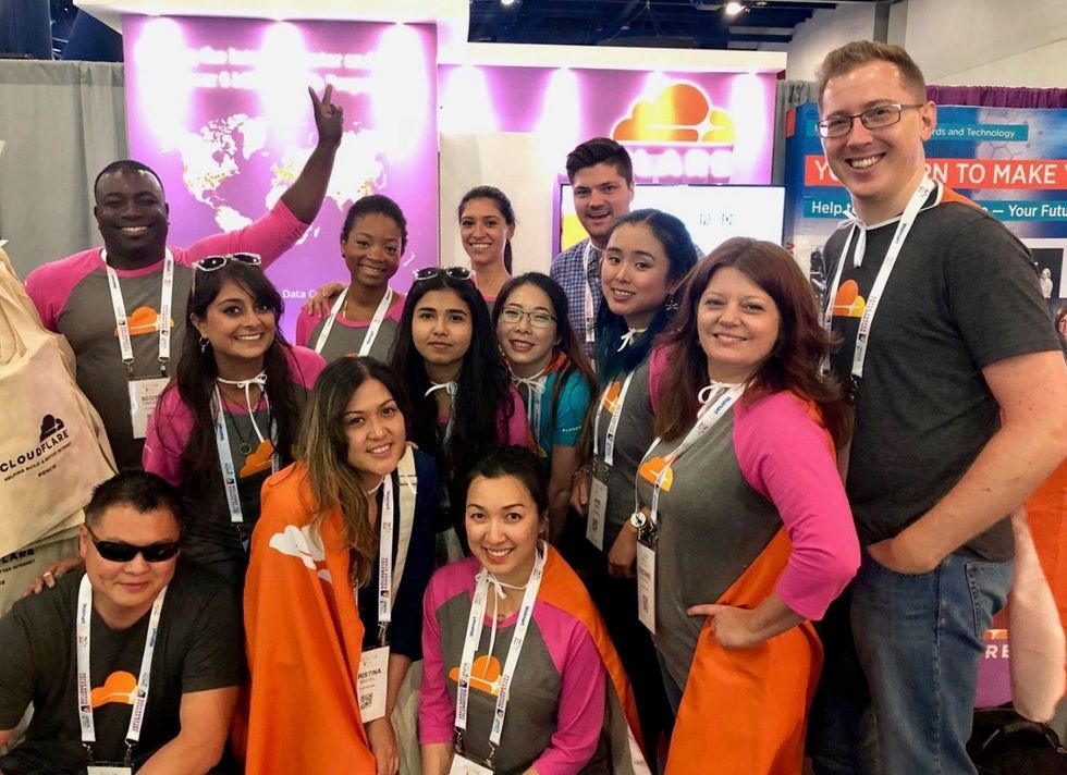 Working the booth was a whole lot more fun than I could have imagined. I am an introvert and tend to avoid crowds and interactions with too many strangers. I surprised myself by taking on the role of "traffic control"— walking the expo floors and approaching women to ask if they are looking for a great place to work. Cloudflare is a great place to work so I could authentically express my feelings and also specifically speak to why it's an ideal place to start your career. Cloudflare is a company where you work to solve some of the internet's biggest problems at a scale where it has real impact.