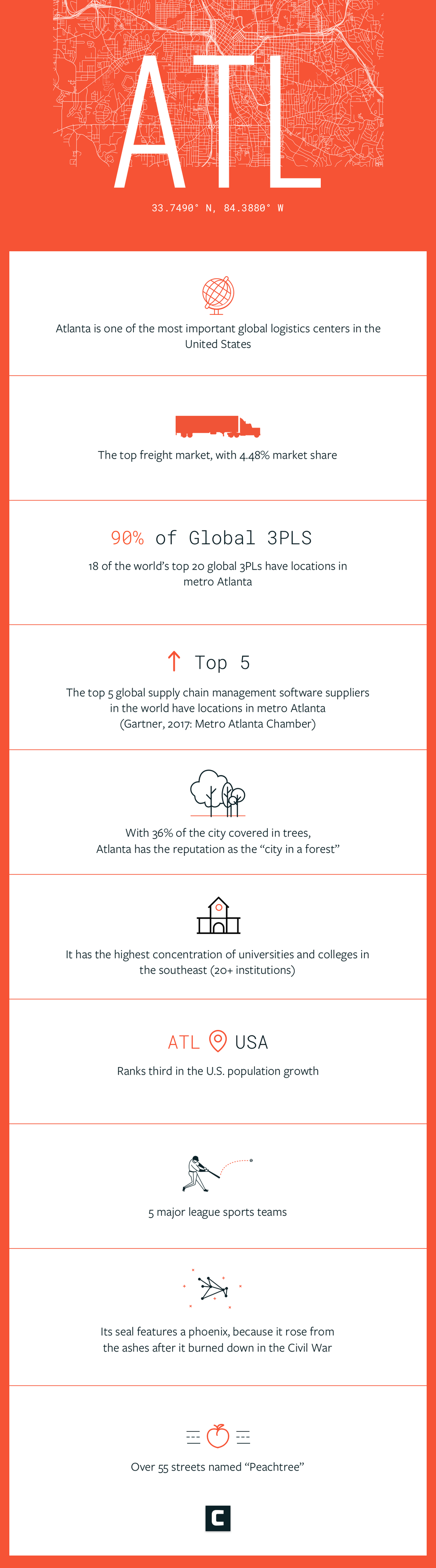 Atlanta is a leading global center for supply chain. It has strong representation of Fortune 500 companies as well as regional, thriving businesses, and it's a vital location for freight in the US. We're excited to join supply chain leaders such as UPS, Delta, Home Depot, and Westrock by expanding our presence in the city, and we look forward to making new friends in the freight community.