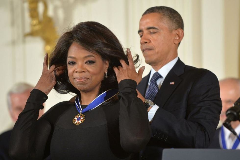 President Obama awarding Oprah with the Presidential Medal of Freedom