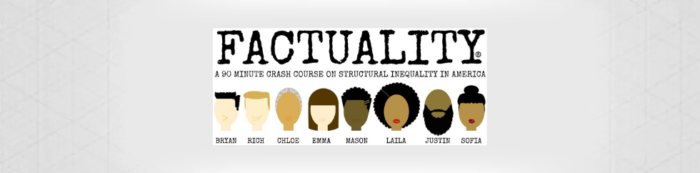 FACTUALITY is a facilitated dialogue, crash course, and interactive experience, that simulates structural inequality, in America. Participants assume the identities of the characters above, encountering a series of fact based advantages & limitations based on the intersection of their race, class, gender, faith, sexual orientation, age, and ability.