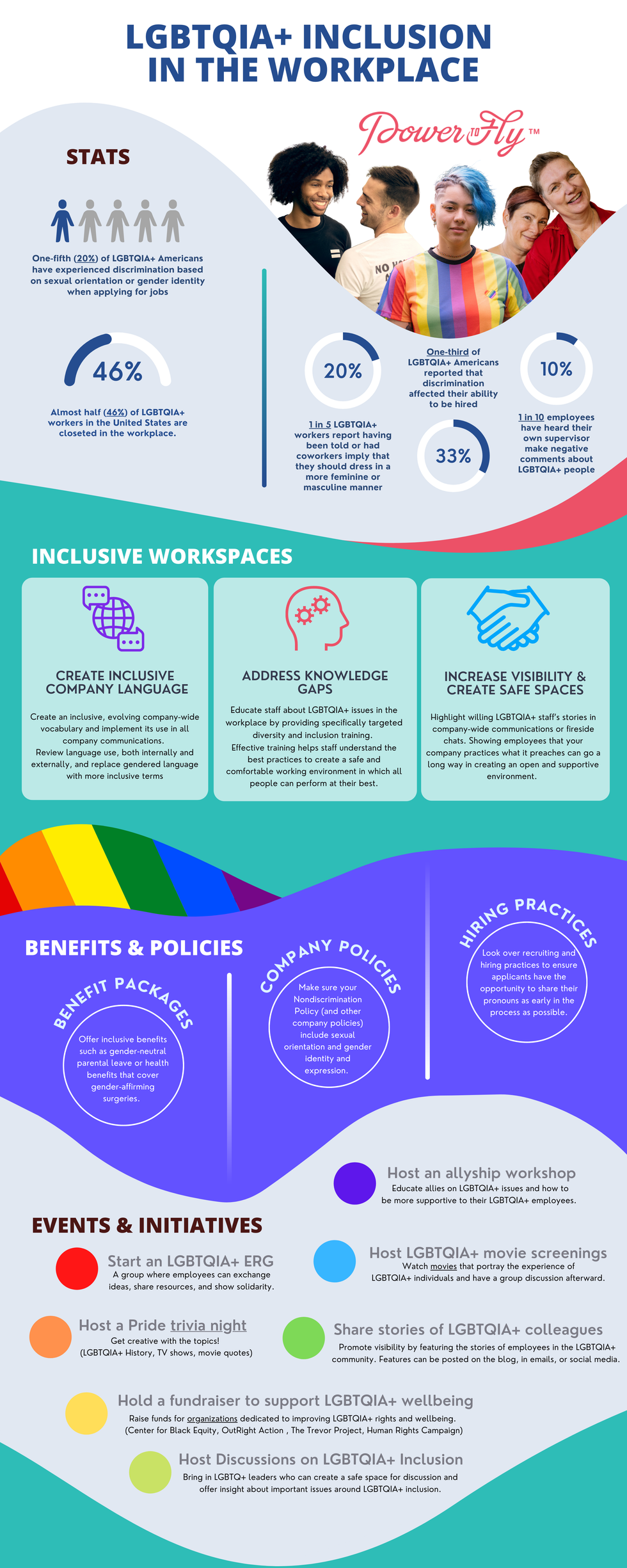 To help you make your workplace more inclusive for members of the LGBTQIA+ community, we've rounded up some key statistics and highlighted best practices — covering everything from inclusive language to benefits — in the infographic below.
