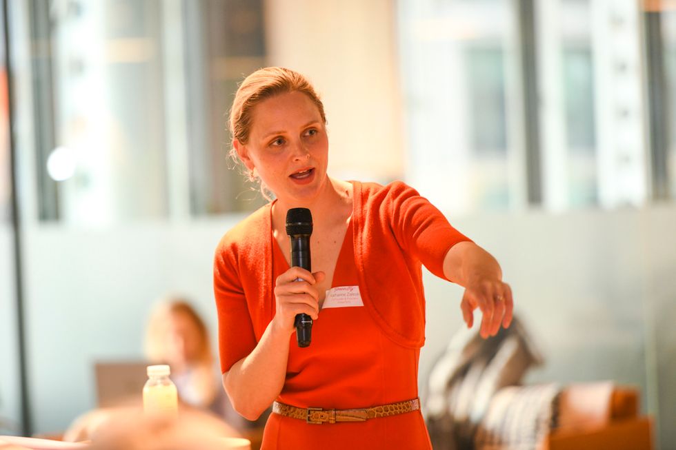 PowerToFly's Katharine Zaleski reviews the evening's agenda.