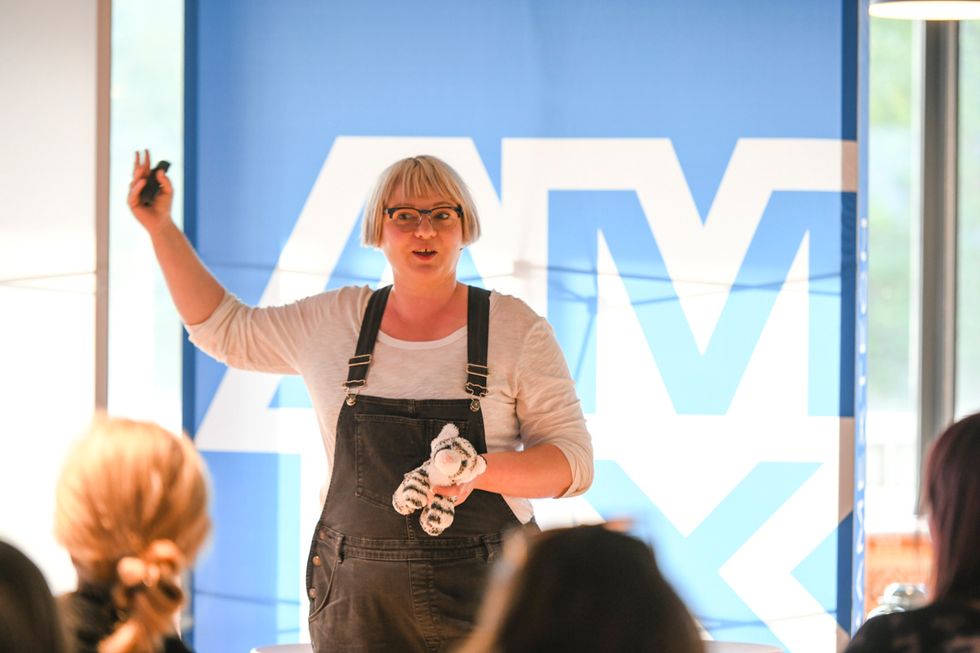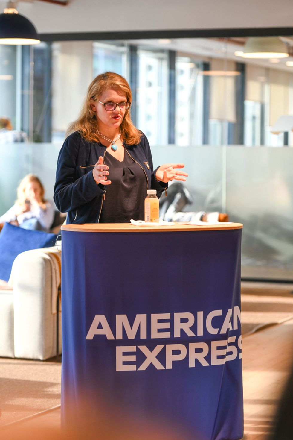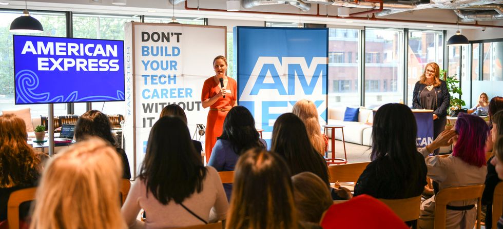 American Express' Siobhan Shea leads the night's tech demo.