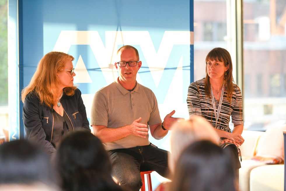 Colin Allen, Vice President, Digital Workplace and Global Infrastructure, fields a question while fellow with our other panelists Katrina Roberta (left) and Vanessa Hackett look on.