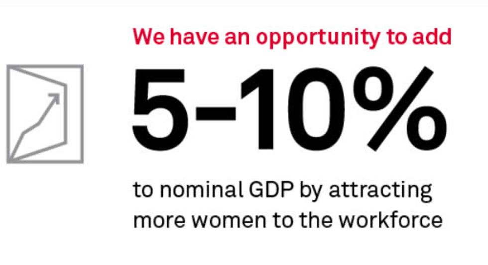 A dual-pronged effort of increasing entry and retention of more women to the American workforce, particularly those professions traditionally filled by men, represents a substantial opportunity for growth of the world's principal economy, with the potential to add 5%-10% to nominal GDP in just a few decades.