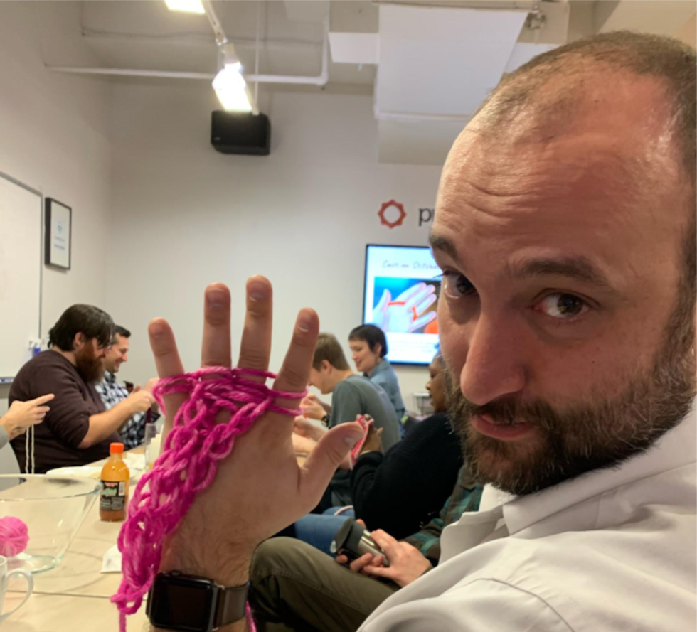 Just another Talk Tuesday at PromptWorks. Our newly graduated Engineering Apprentice Leigh Passamano presented a fun and hands on talk titled "Knit Knit Perl".