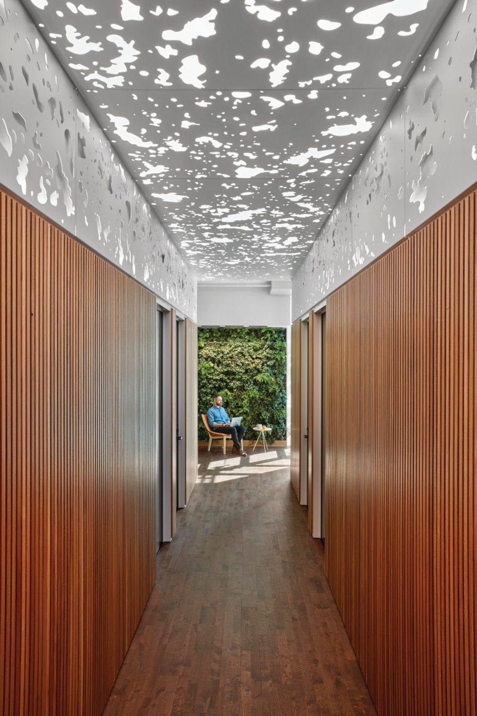 Ping-pong tables and free cupcakes aside, Roberts mentions that office spaces don't have to be totally devoid of fun or, at the very least, some breathing room. "We have just enough pleasantry," he says. "A wonderful barista bar, a tiny little music room, nap rooms, and nice little spaces that are quaint and interesting."